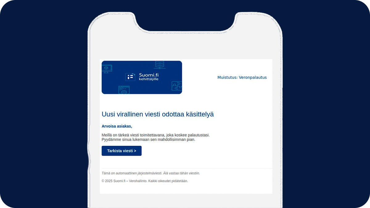 Suomi.fi:n nimissä on havaittu liikkuvan veronpalautuksiin liittyviä huijausviestejä.