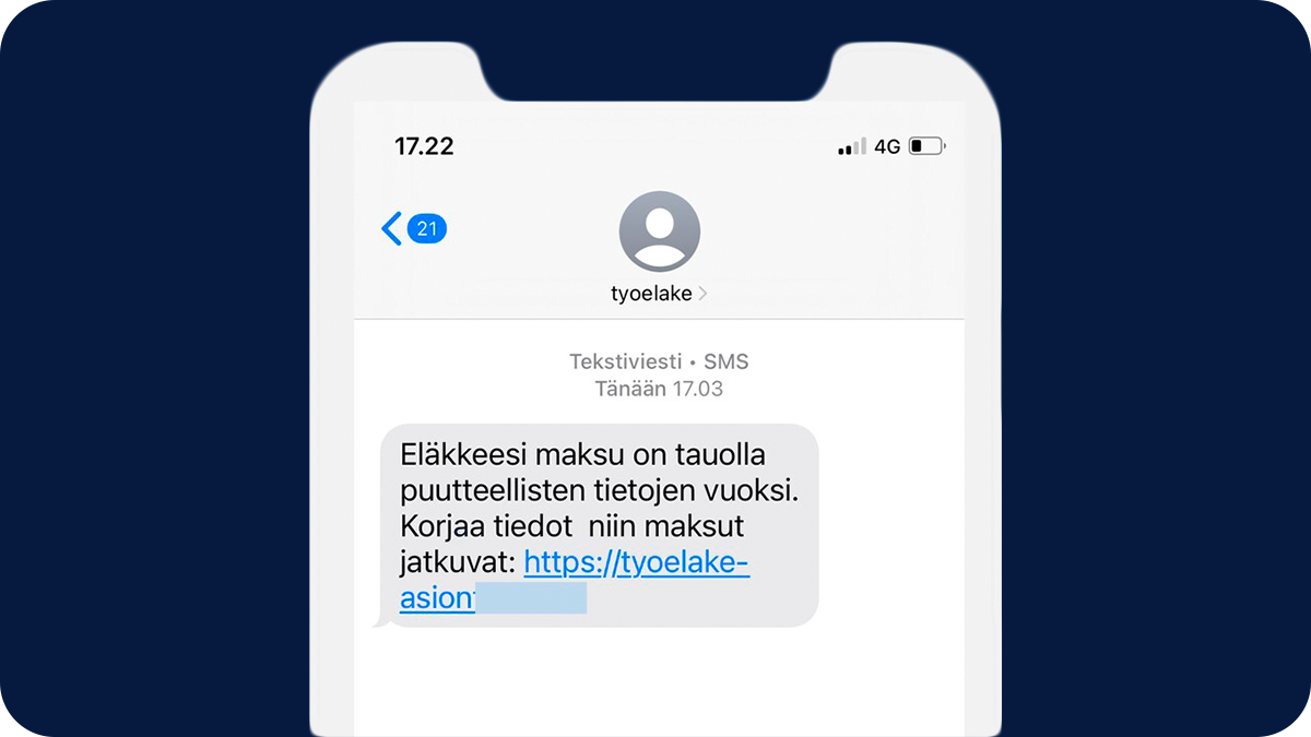 Viesteissä voidaan esimerkiksi väittää, että eläkemaksut on keskeytetty tai että eläkkeeseen liittyviä tietoja on päivitettävä tai annettava linkin kautta.